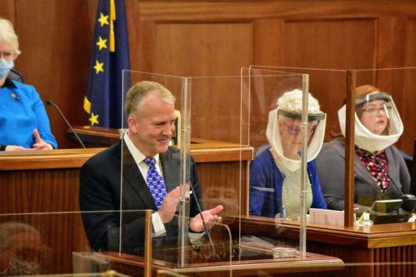 May 14 By James Brooks Gov. Mike Dunleavy and leading Alaska lawmakers unveiled a new proposal Wednesday to constitutionally guarantee an annual Permanent Fund dividend and permanently cap annual transfers from the Alaska Permanent Fund to the state treasury. Their proposal, a new constitutional amendment,…
