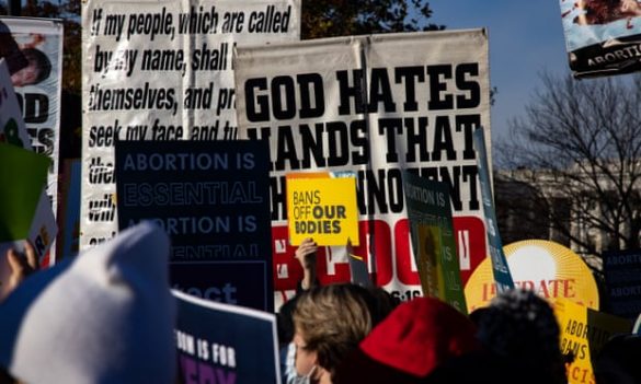 America’s deep political divisions play out on courthouse steps as justices hear abortion case